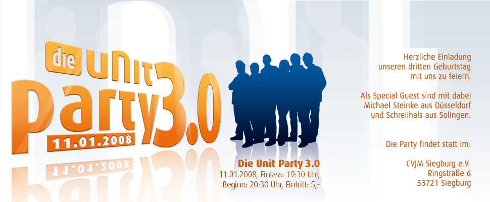 Die Unit - eine befreundete A-Cappella Gruppe - feiert ihr dreijähriges Bestehen und hat uns herzlich eingeladen, diesen Geburtstag sangeskräftig mit ihnen zu feiern!