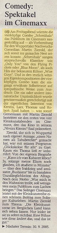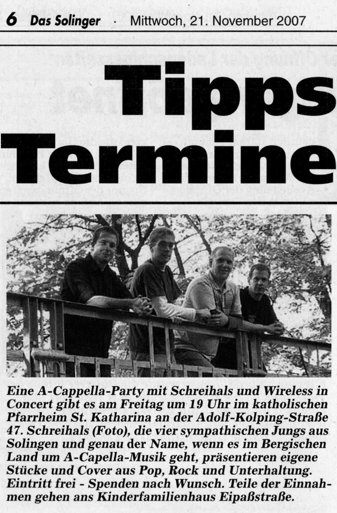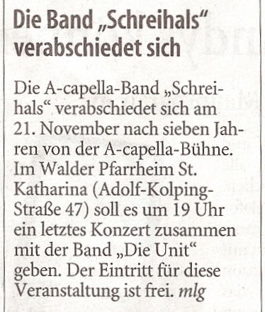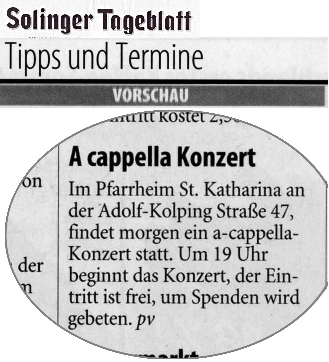 Solinger Tageblatt zur "A-Cappella Party"