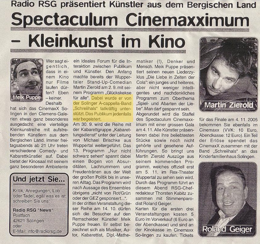 Solinger Tageblatt zum "Spektakulum CinemaxXimum"