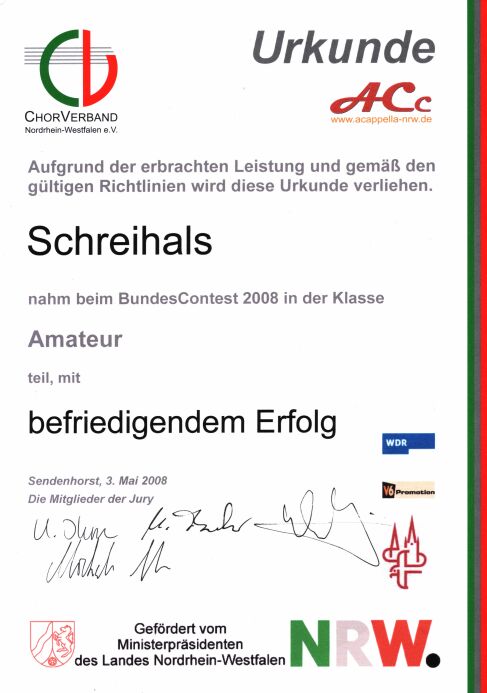 Bundeswettbewerb Acappella (Urkunde)