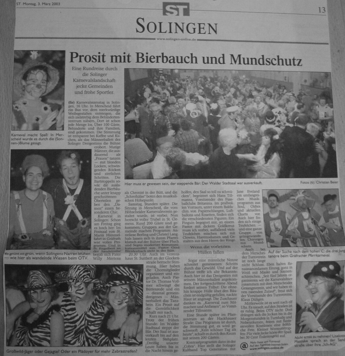 Solinger Tageblatt zum Pfarrkarnevals St. Engelbert